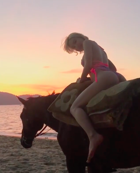 먼저 8일에 공개된 영상에서는 해가 질 무렵의 석양을 배경으로 말 위에 앉아 섹시한 포즈를 취한 그를 볼 수 있었다.