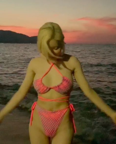 또 바로 다음날 공개된 영상에는 같은 배경인 듯 보이는 곳을 배경으로 아찔한 수영복을 입은 채 바다를 거니는 DJ소다의 모습이 나왔다.