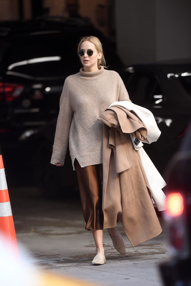 날씨가 쌀쌀해지며 제니퍼 로렌스의 코트가 주목받고 있다.