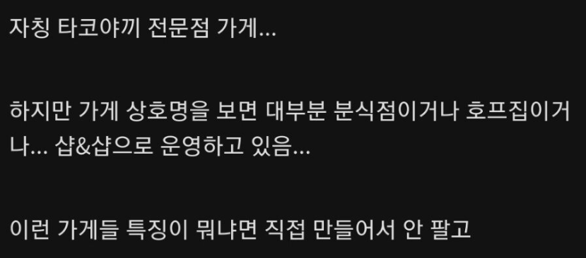 A씨는 “자칭 타코야끼 전문점 가게…” 라 말문을 열었다.
