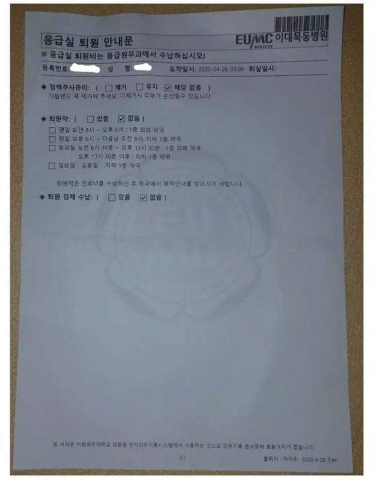 글쓴이는 응급실을 다녀온 영수증과 퇴원 안내문을 공개하며 글의 신뢰성을 높였다.