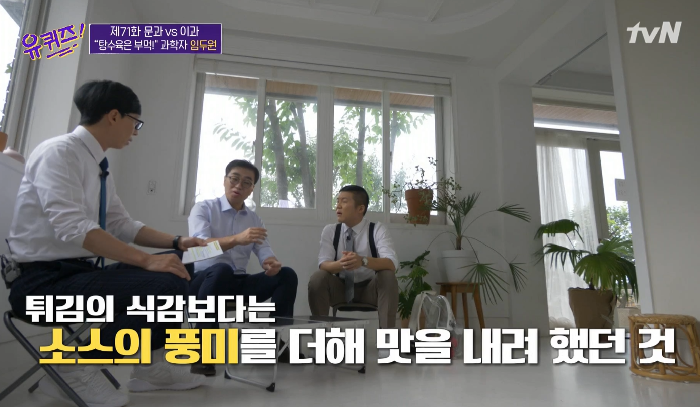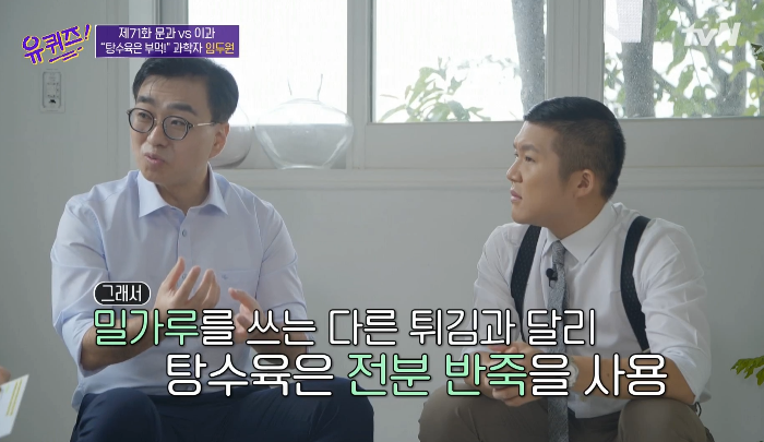 질문을 받은 임두원은 탕수육은 다른 튀김과 달리 전분 반죽을 쓴다며 “탕수육은 튀김의 식감보다는 소스의 풍미를 더해 맛을 내려한 음식이다”고 설명했다.