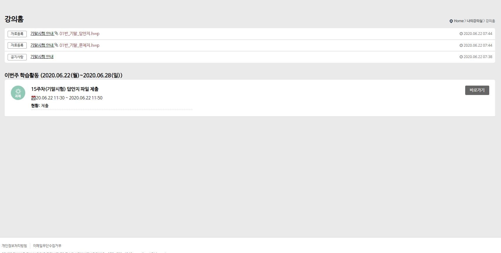 비대면 시험이었기에 학교 홈페이지에서 기말고사 문제를 다운로드한 후 시험을 쳤다.