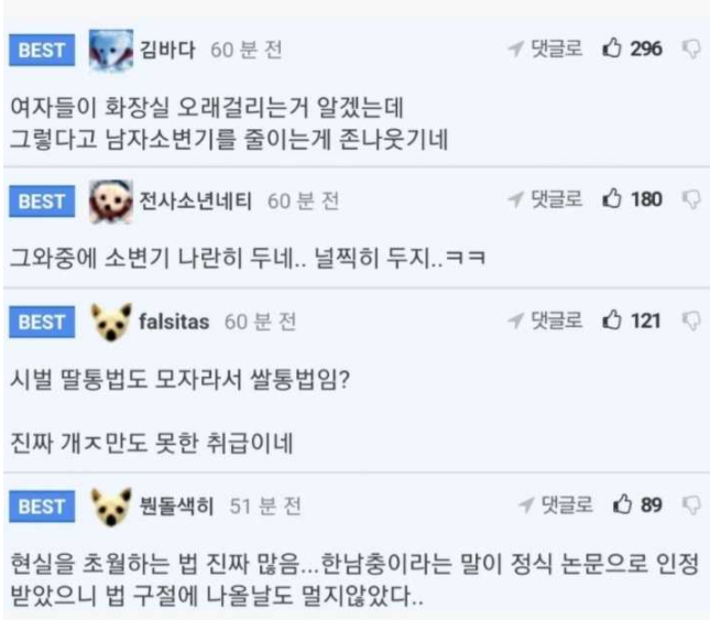 그리고 남자화장실도 똑같이 해야하는 것 아니냐는 소리가 있다.