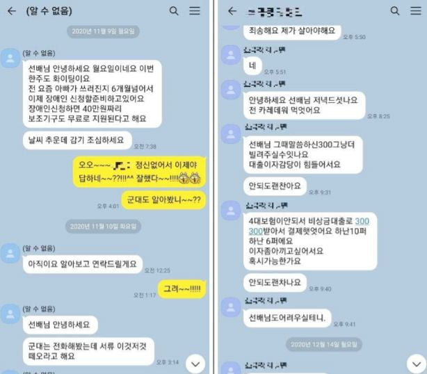 한달 뒤인 12월엔 “그때 말씀하신 300을 빌려달라. 대출 이자 감당이 힘들다”고 문의했다.