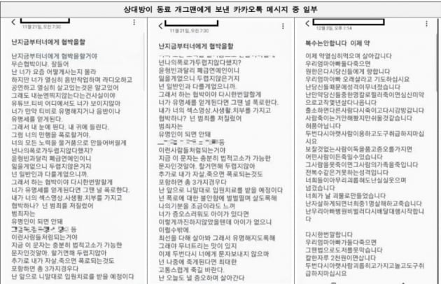 윤형빈이 아닌 다른 동료 개그맨들에겐 “우리 엄마 아빠 둘 다 죽으면 원한은 다시 당신들에게 향한다”고 협박도 했다.