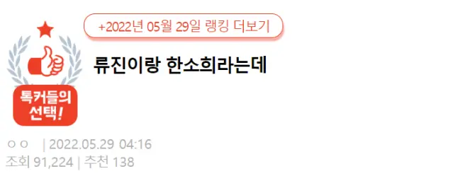 작성자 A씨는 “류진 살 너무 많이 빠졌네” 라는 제목의 글로 많은 이들의 궁금증을 증폭시켰다.
