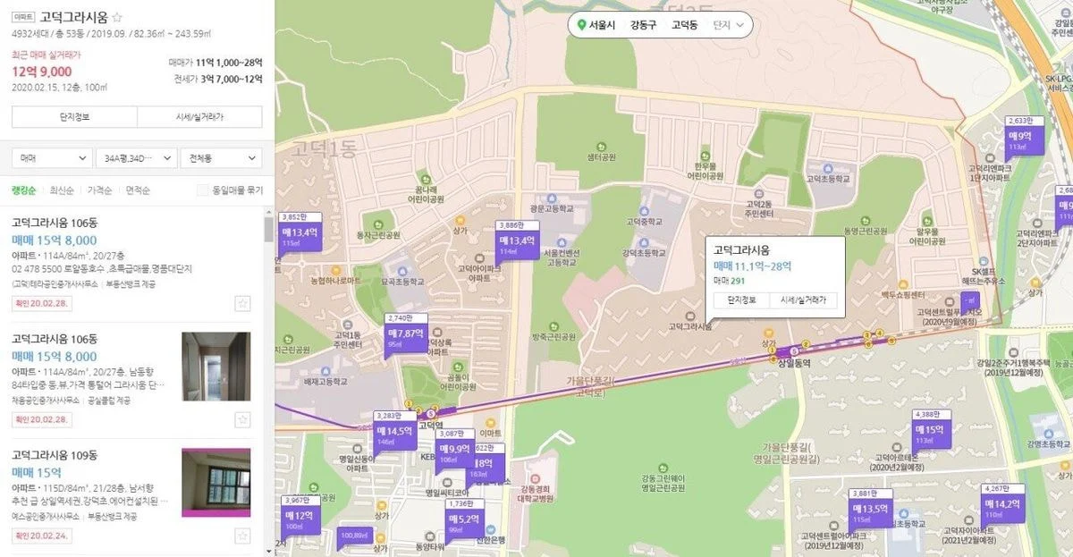 84.24㎡ 기준 최근 실거래가는 14.9억 원이며, 호가는 15~17억 원이다.