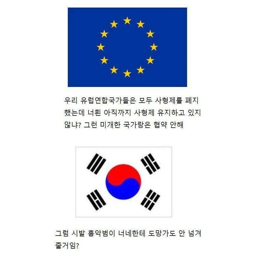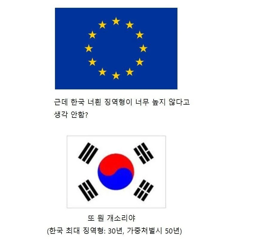이렇게 한국에서 아무리 연쇄살인, 아동 성추행 및 강간, 존속살인, 테러 등이 이루어져도 그런 흉악범들을 최고형인 ‘사형’이 아니라 무기징역으로 나라 세금 받아먹으면서 하루하루 연명하는것.