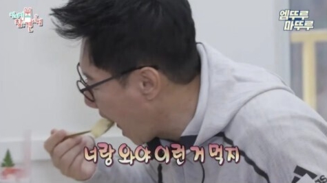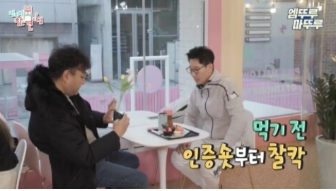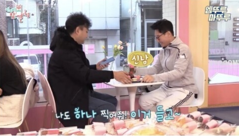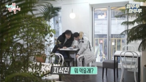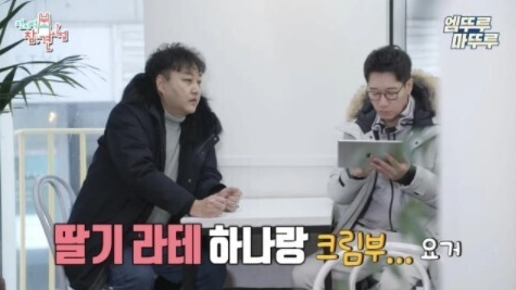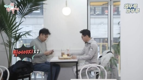 술을 마실거라고 생각했던 것과 달리 남자 둘이서 카페를 가 화제 중인 지석진과 김수용.