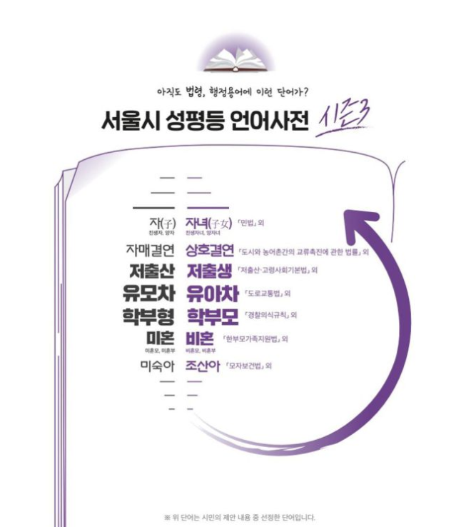 서울시여성가족재단에서 최근 ‘서울시 성평등 언어사전 시즌3’을 발표해 논란이 됐다.