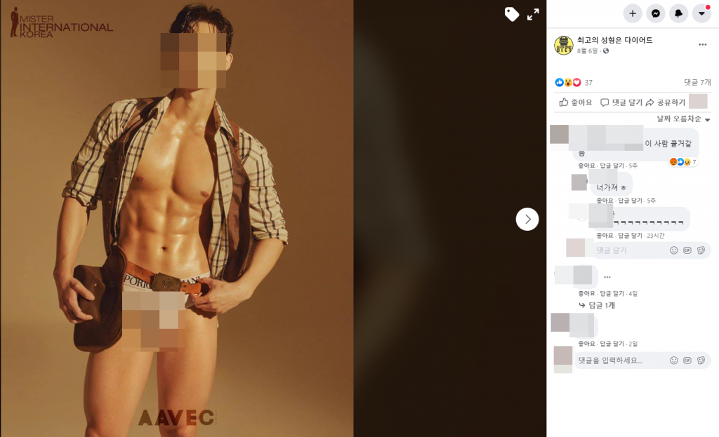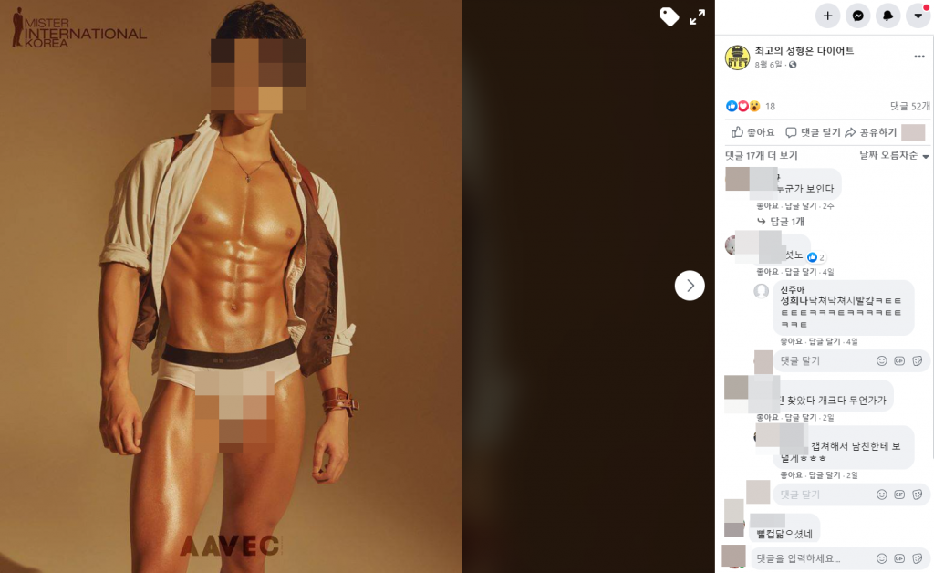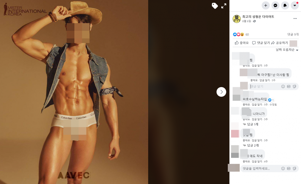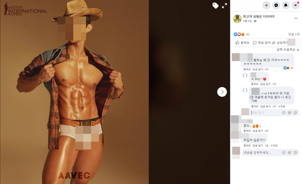 미스터 인터내셔널은 국제 미남·미녀 대회로 유명한데 해당 대회에 출전한 남성 참가자들이 댓글로 온갖 성희롱을 당하는 모습을 볼 수 있다.