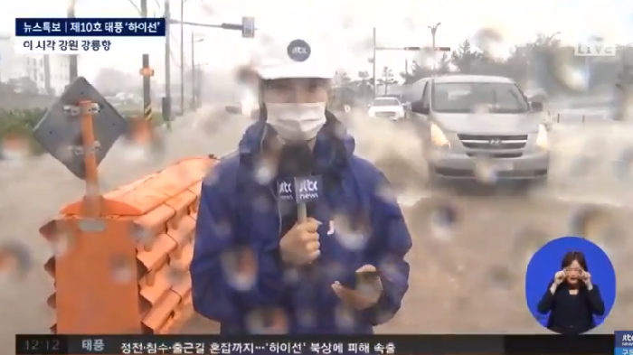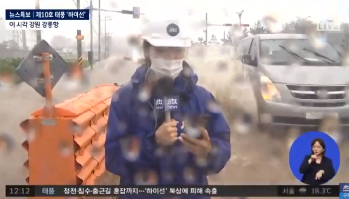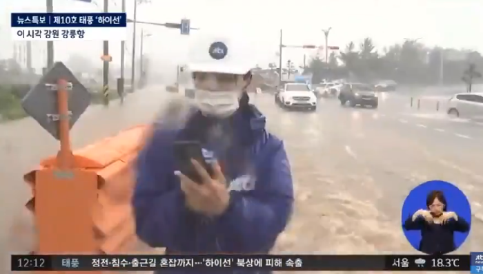 제10호 태풍 ‘하이선’ 피해 현장에 나간 기자가 예상치 못한 참사를 당했다.