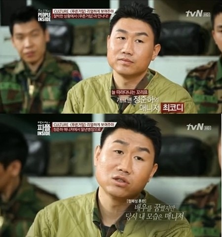 이후 매니저를 그만두고 배우로 전향해 tvN 예능 ‘푸른거탑’에서 말년병장으로 출연했다.