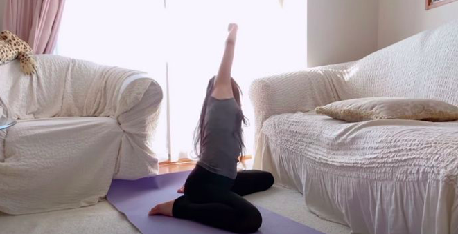스트레칭 법은 간단하다. 무릎을 꿇고 종아리를 양 옆으로 빼낸다. 양손은 뒤로 깍지를 끼고 가슴은 앞으로 내밀며 허리를 핀다.