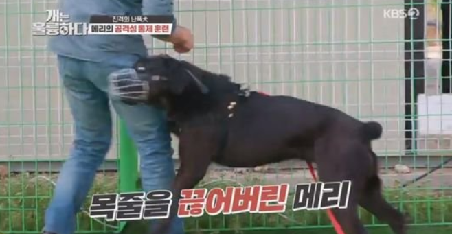 그리고 이경규가 보호자에게 다가가자 메리는 또다시 흥분했고 강형욱이 목줄을 잡으려는 순간 입마개가 풀리는 아찔한 상황이 벌어졌다.