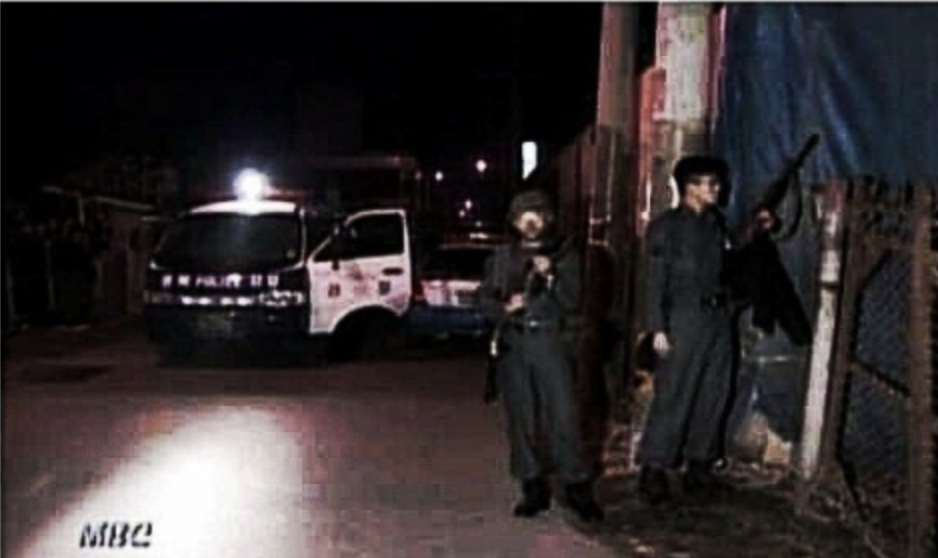 총상으로 쓰러진 김 경장은 무전으로 지원을 요청하고 있었고 이것을 발견한 입군은 숨진 김 순경의 허리춤에서 권총을 꺼내 김 경장을 향해 2발을 난사했다.
