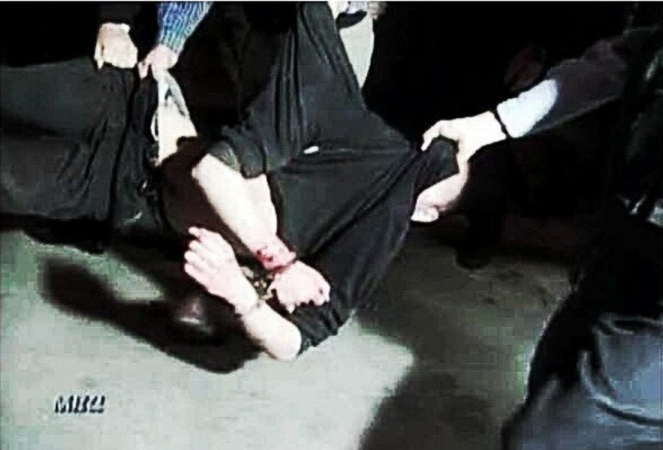그는 자신의 왼쪽 손목 등을 찌르며 자해를 시작했다.