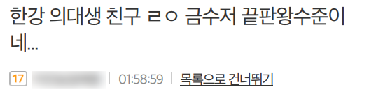 한 온라인 커뮤니티에는 “한강 의대생 친구 ㄹㅇ 금수저 끝판왕 수준이네”라는 제목의 글이 올라와 누리꾼들 사이에서 엄청나게 화제가 되고 있다.
