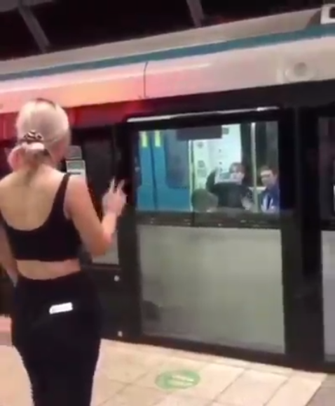 해당 영상을 보면 모르는 남성에게 서양 누나가 손으로 인사를 했다.