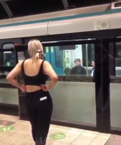 그리고 문이 닫히고 출발하기만을 기다리던 서양 누나는 주위 눈치를 살피더니 열차가 출발하자 갑자기 자신이 입고 있던 브라탑을 올려서 미드를 보여줬다.