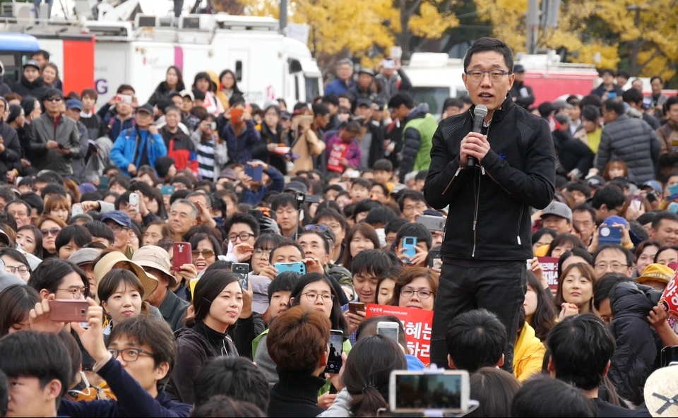 김제동은 전국 중고등학교를 돌아다니며 강연을 하고 있는 것으로 보인다.