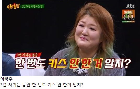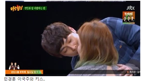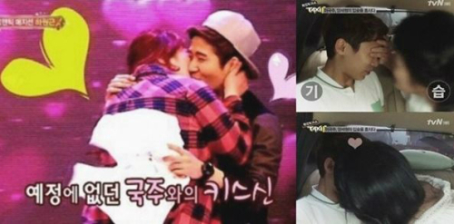 그러나 이국주는 또 뽀뽀를 해주라했고 다가가는 김종국의 입술에 고개를 재빨리 돌려 결국 키스를 해버렸다.