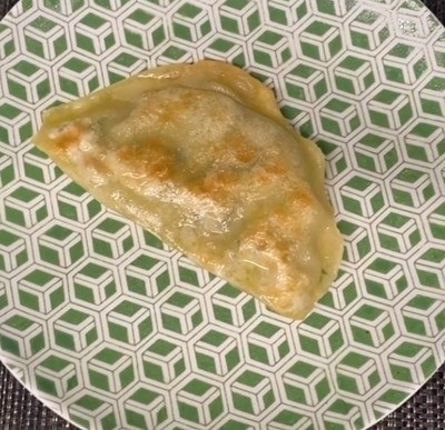 영상 속에서 김성령은 일어서서 만두 하나를 천천히 음미한다.