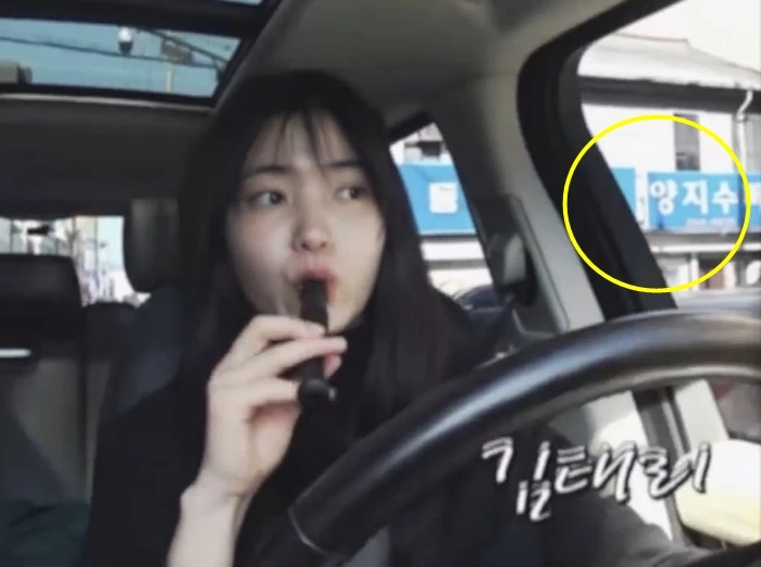 팬들은 영상 속 한 장면을 포착했는데, 김태리가 피리를 불며 어딘가를 운전해 지나가는데, 그의 운전석 뒤로 시골의 한 슈퍼마켓이 비친다.