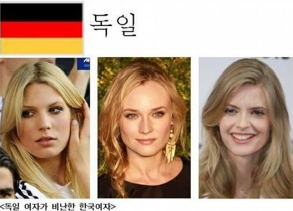 독일여자들은 정치, 경제, 사회, 문화 분야에 골고루 관심을 넓혀 가는데 한국여자들은 오로지 결혼, 명품, 성형, 연예인 사생활, 화장 등 경제발전에 전혀 도움이 안되는 것에만 관심을 두고 산다.