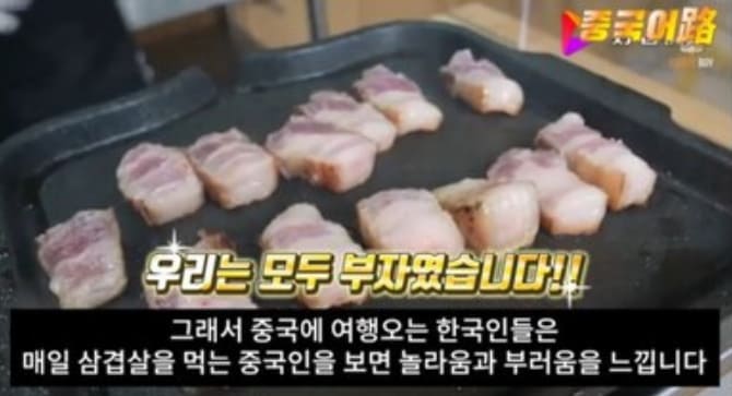 “그래서 중국에 여행 오는 한국인들은 매일 삼겹살을 먹는 중국인들을 보면 놀라움과 부러움을 느낀다”며 자신의 의견을 마지막으로 전했다.