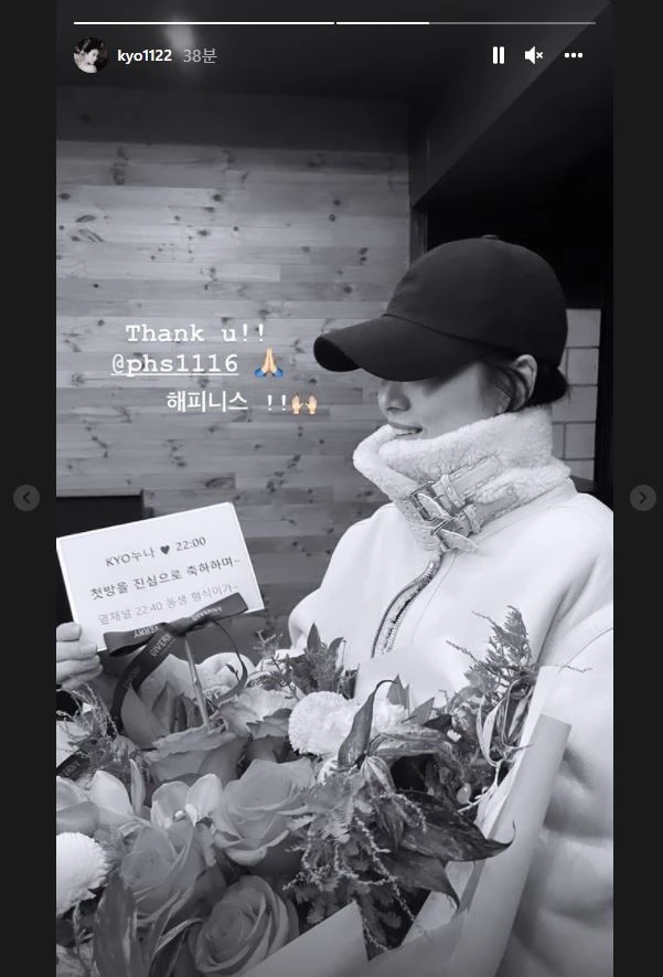 선물을 보낸 사람은 바로 배우 박형식(31)으로 “KYO 누나♥ 22:00 첫방을 진심으로 축하하며~ 옆 채널 22:40 동생 형식이가”라고 젹혀있었다.