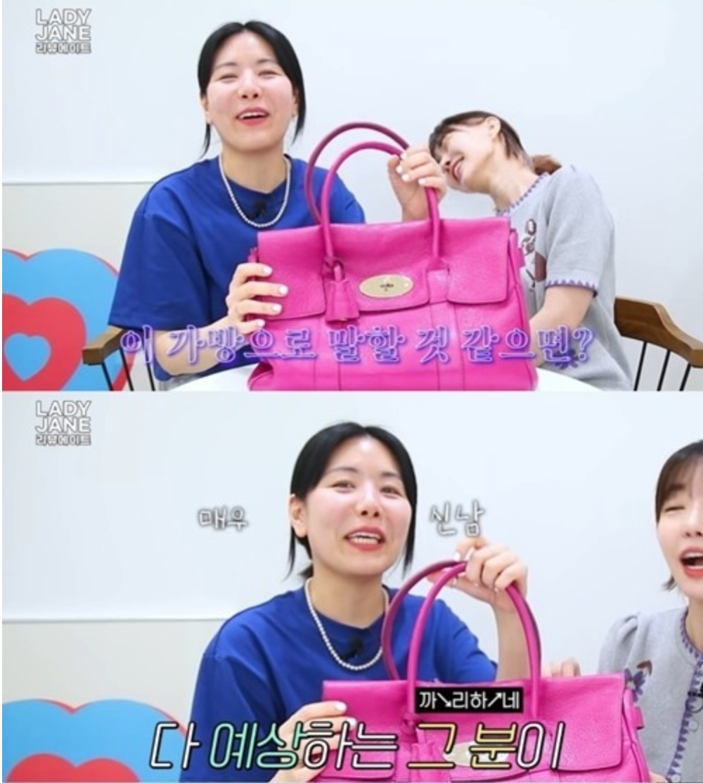 마지막으로 영국 명품 브랜드 멀버리의 핑크색 빅백을 꺼내놓은 레이디제인은 “아직까지 고민 중이다. 이걸 내놔야 하나, 말아야 하나”라면서 설명을 주저하며 핑크색 빅백을 꺼냈다.