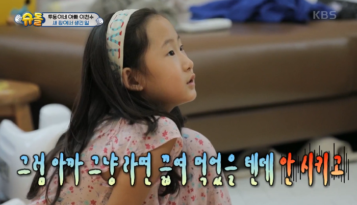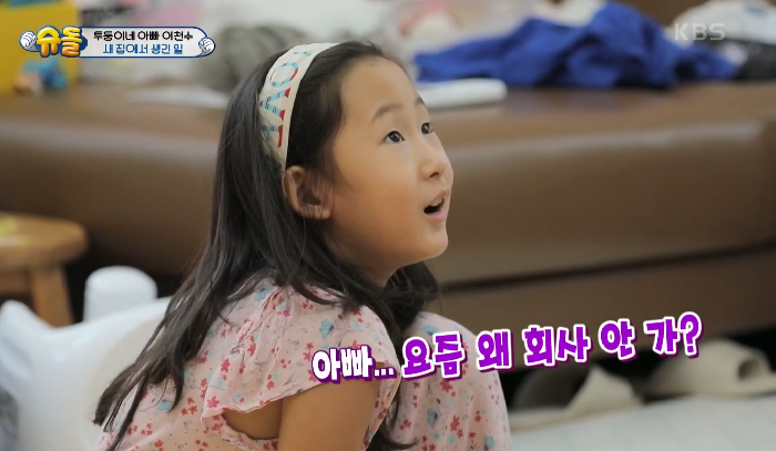 이날 아빠 이천수가 평소와 달리 출근을 하지 않고 집에서 동생을 돌보자 이상함을 느낀 이주은은 잠시 고민하더니 “왜 아빠 회사 안 가고 요즘 집에만 있어?”라고 질문했다.