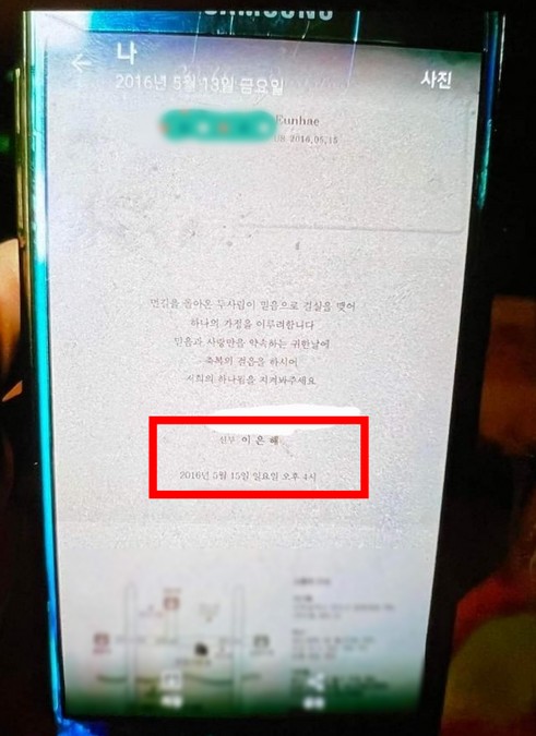 해당 사진은 ‘2016년 5월 15일’, ‘신부 이은해’라고 적혀있는 청첩장이었다.