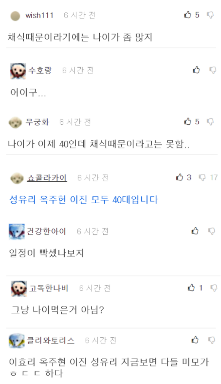 이후 보여준 근황에서 같은 핑클멤버들보다 나이가 들어보인다며 누리꾼들 사이에서 나오고 있는 말이다.