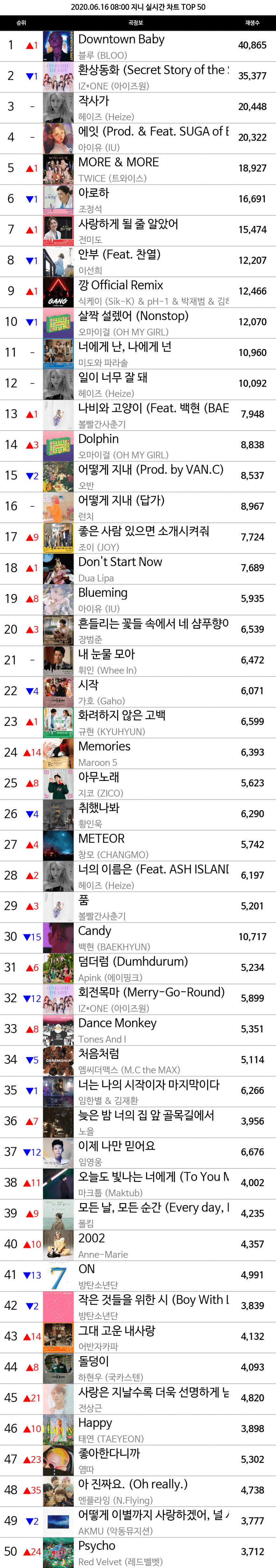 ‘다운타운베이비’는 15일 컴백한 아이즈원의 ‘환상동화’를 비롯해 아이유와 슈가의 협업곡 ‘에잇’, 헤이즈의 ‘작사가’ 등을 제치고 역주행하며 더욱 주목을 받았다.