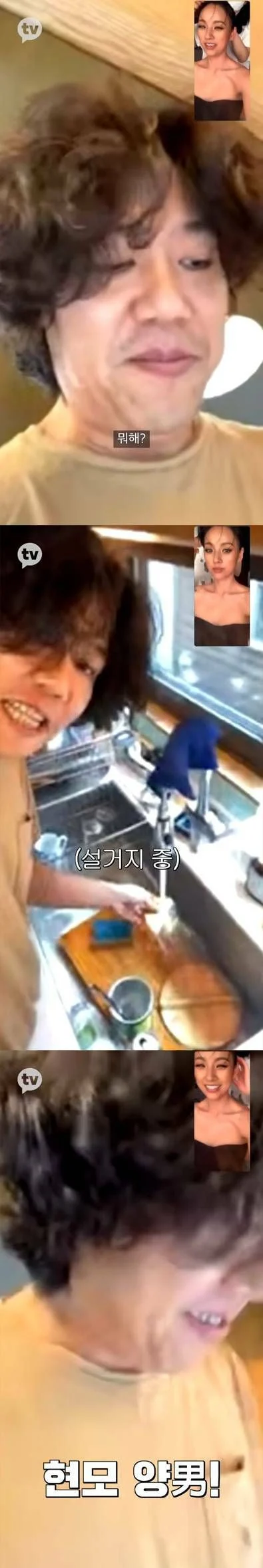 이상순은 설거지를 하는 중이었고, 이효리가 ‘어머니’라고 부르며 장난을 치자 “그래~ 수박화채 먹으러 와라~”고 맞대응 했다.