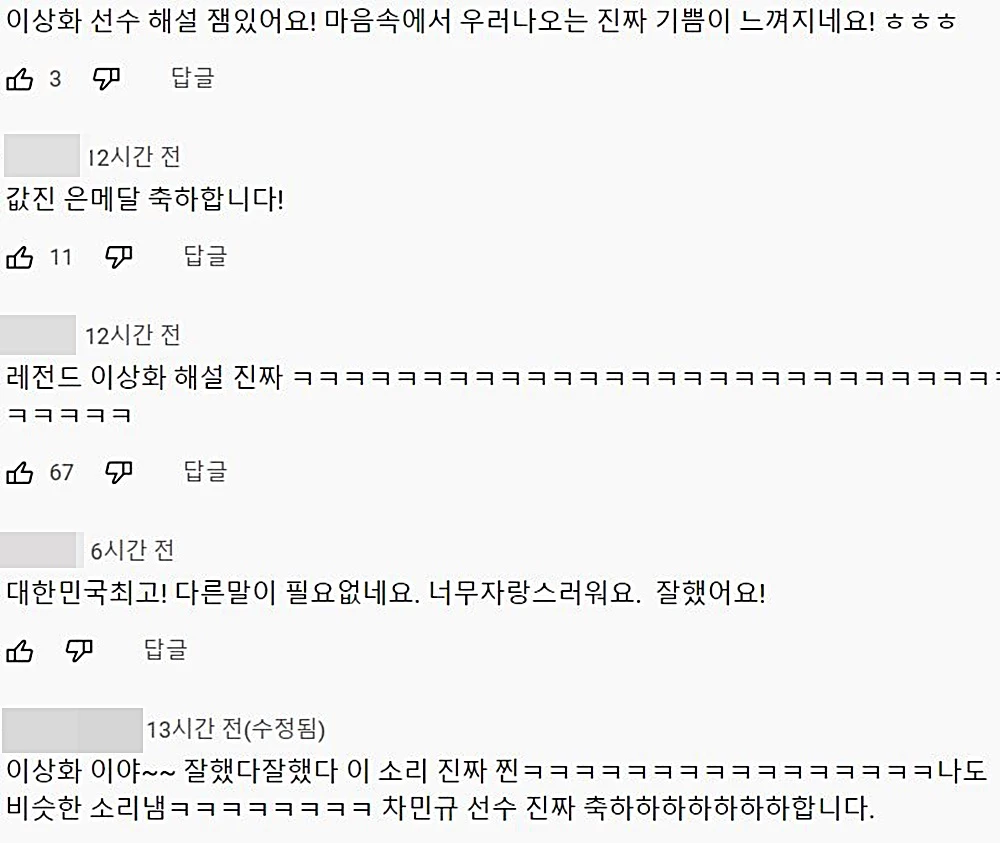 이상화는 중계 방송 말미 “너무 흥분했다”면서 시청자들에게 사과했다.