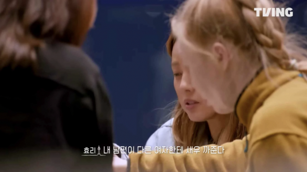 새우를 먹던 중 이효리는 “내 남편이 다른 여자에게 새우를 까주는 거 어떠냐”며 친구들에게 ‘새우 논쟁’에 대해 언급했다.