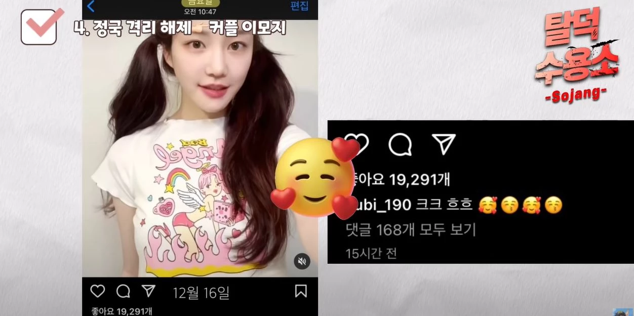 이어 “정국이 12월 16일 자가격리 해제됐는데, 이날 이유비가 외출 사진을 인스타그램에 남겼다. 또 다른 사진의 맨투맨 티셔츠와 팔찌는 커플 같다”고 전했다.