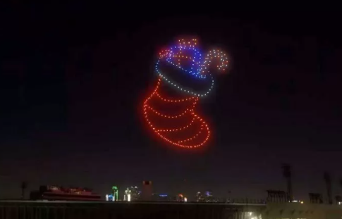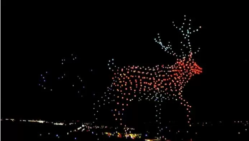 드론들은 움직이며 순록의 모습을 형상화 했고 이어 산타의 얼굴을 표현했다.