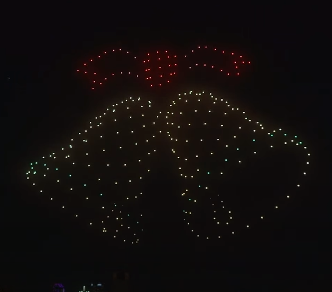 해당 영상을 보면, 1000개의 드론은 캐롤에 맞춰 밤하늘을 날아다니며 빛을 뿜으며 다양한 모양을 만드는 모습을 볼 수 있었다.