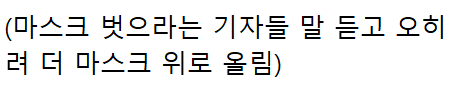 기자들은 마스크를 벗어달라고 계속 소리지르고 살짝 욕이 섞인 탄식을 내뱉어도 꿋꿋하게 마스크를 벋지 않았다.