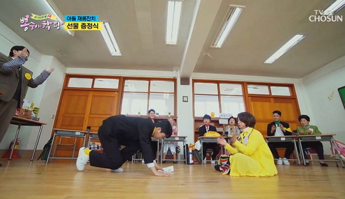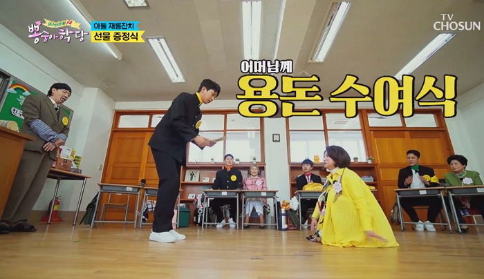 이후 바닥에 앉은 어머니에게 큰 절을 올리며 용돈 수여식을 가졌다.