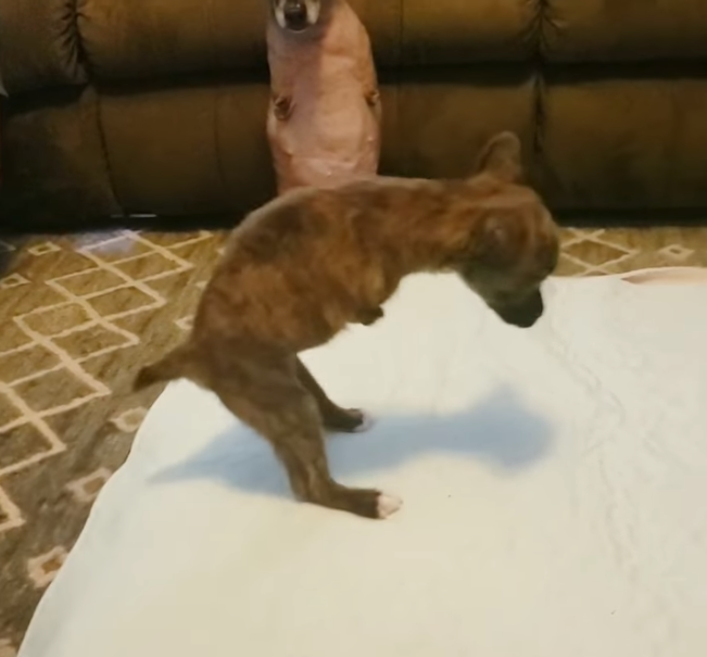 해당 영상에서는 선천적으로 앞다리가 없는 강아지가 나왔다.