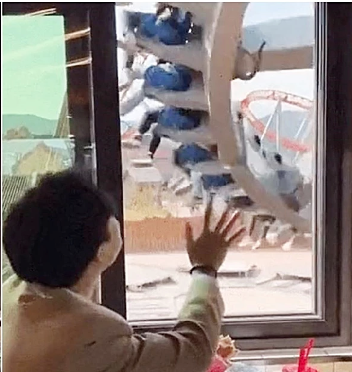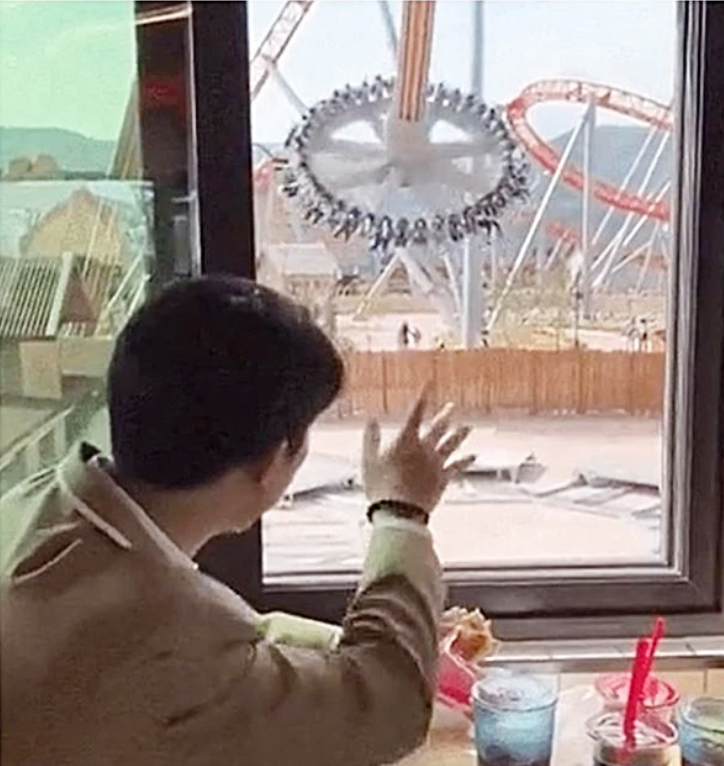 당시 ‘자이언트 스윙’은 사람들을 태우고 운행중이었는데, 자이언트 스윙이 매장 창문 가까이 다가오는 장면이 펼쳐지기도 했다.