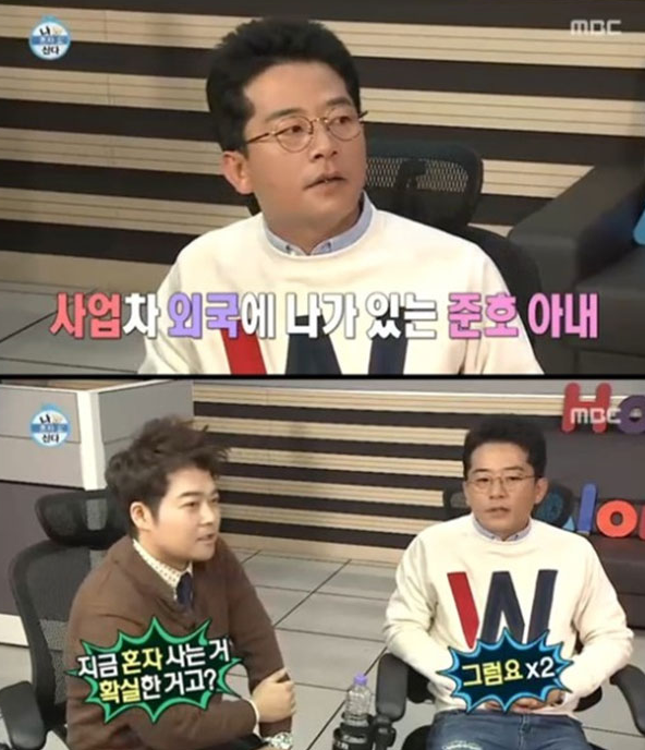 하지만 지난 2017년 개그맨 김준호는 ‘나 혼자 산다’에 출연해 지금도 여전히 혼자서 살고 있다는 근황을 전했으며, 아내의 사업 비용을 지원해주면서 본인은 혼자 배달 음식을 시켜 먹고, 후배들에게 챙김 받는 쓸쓸한 분위기를 자아냈다.