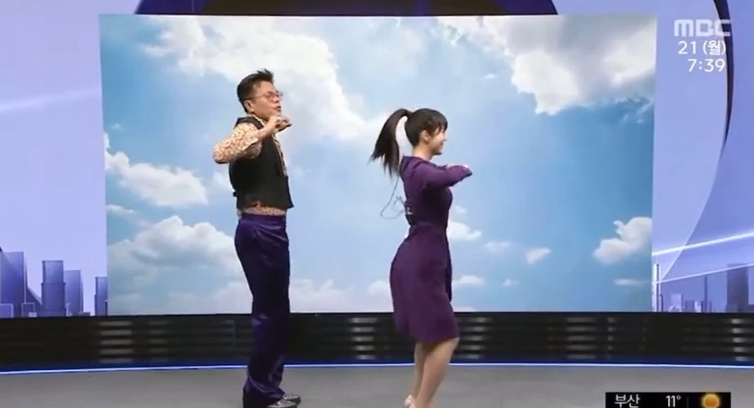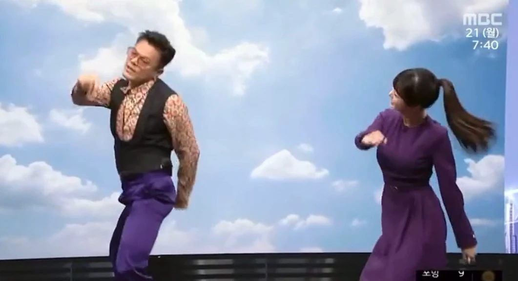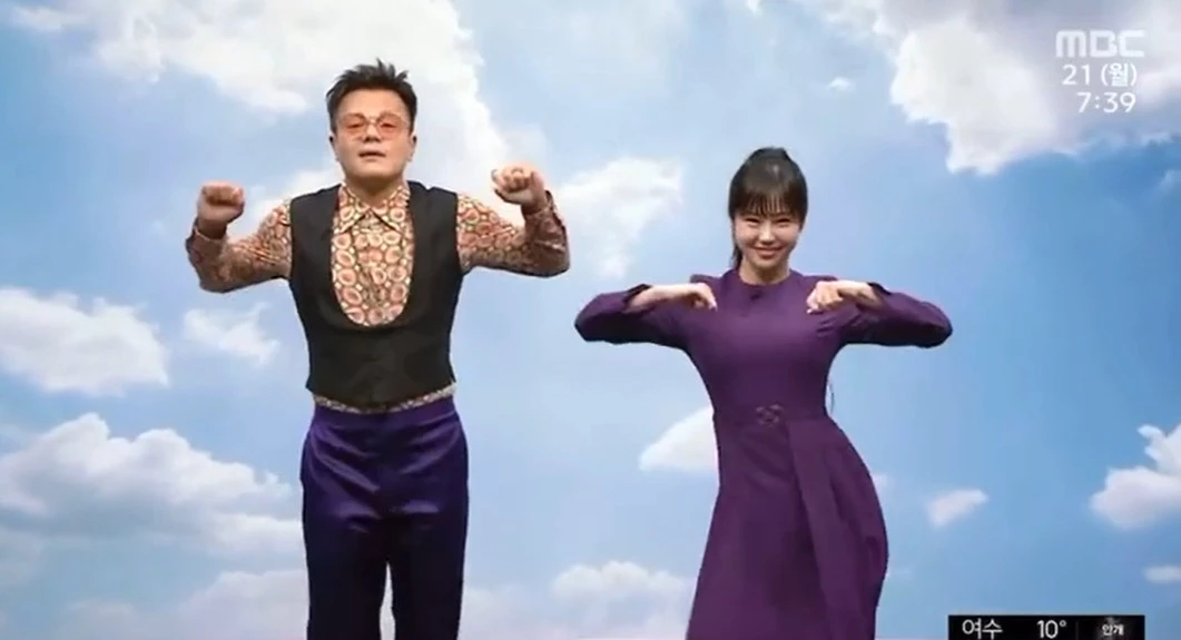 가수 겸 프로듀서 박진영이 MBC 뉴스에 깜짝 등장해 김가영 기상 캐스터와 함께 커플 댄스를 춰 화제가 되고 있다.