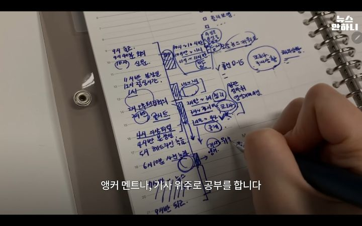 2시엔 편집회의가 있으며, 5시엔 헤드라인 녹음, 6시 10분엔 사전녹화 등이 있다.